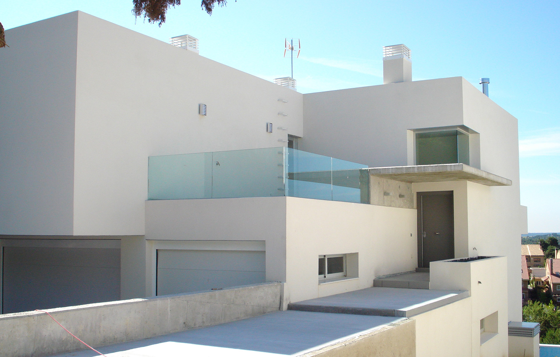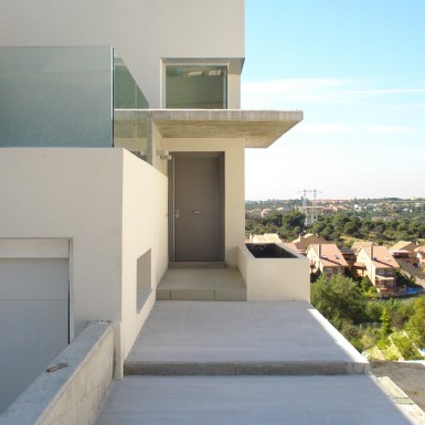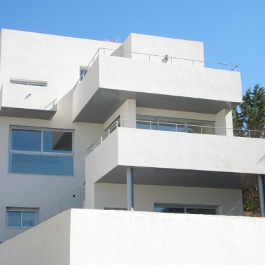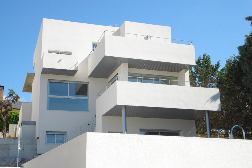 Vivienda Unifamiliar con diseño escalonado en terrazas orientadas a la topografía del terreno natural. Superficie 455m2.