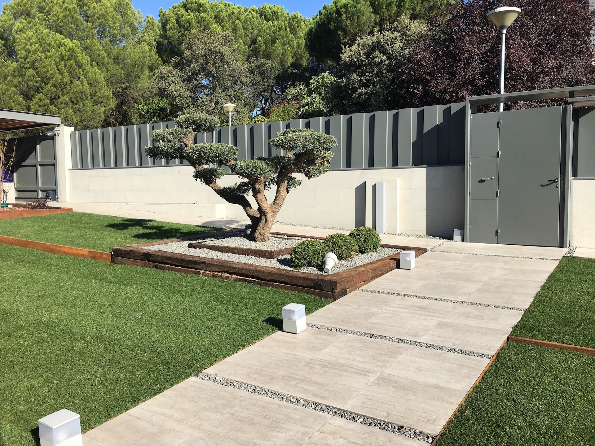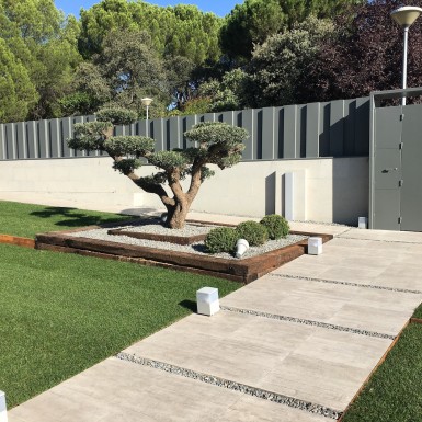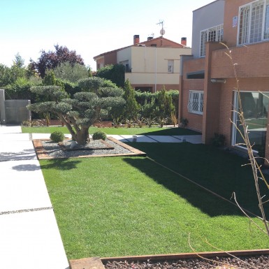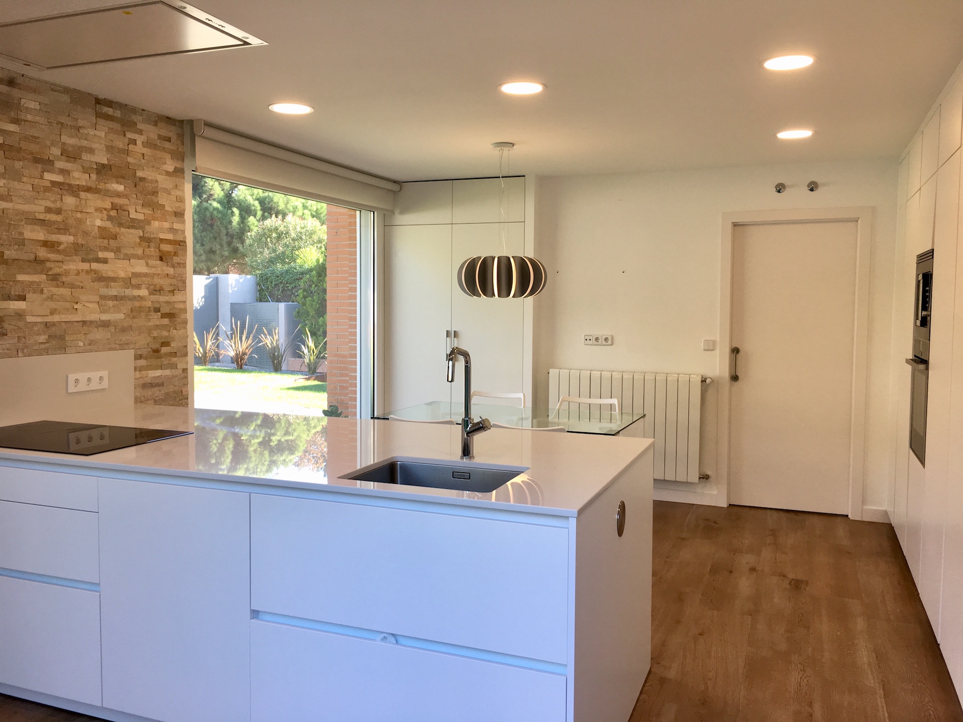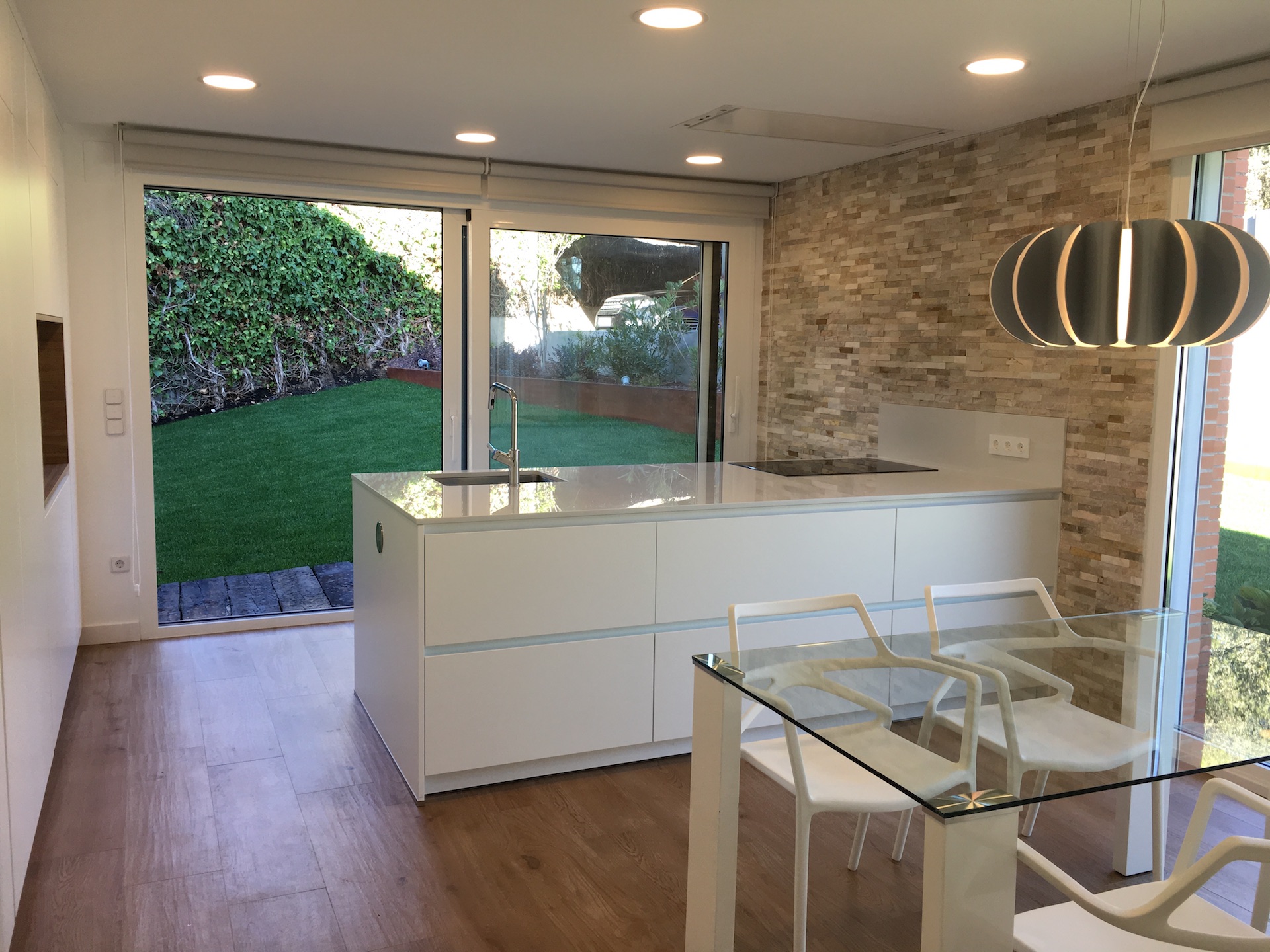 Reforma dirigida a conseguir modernizar el aspecto exterior de la vivienda, con la ampliación del dormitorio principal y la cocina, creando dos cuerpos geométricos limpios que protagonizan la nueva imagen. Se diseñan el jardín, zona de piscina y nueva zona de aparcamiento exterior.